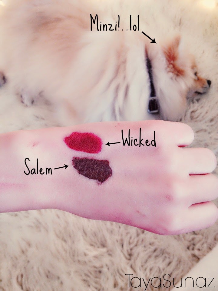 My first impression as always was just pure excitement, because I personally own many of the Lime Crime products, and absolutely loved every single one of them, so I was pretty sure I was not going to be disappointed with this purchase. The first colour I am going to quickly review is 'Salem'. This is a milk chocolatey brown colour, with a very slight sweet scent of chocolate! (I think?? it smells like something sweet nevertheless!!!). When I first swatched the colour on the back of my hand, it felt very 'dry', which I later found out was actually 'lightweight' (after having swatched it on my lips afterwards). The colour dried very quickly within seconds after application, leaving a phenomenal velvety/matte finish on your lips.